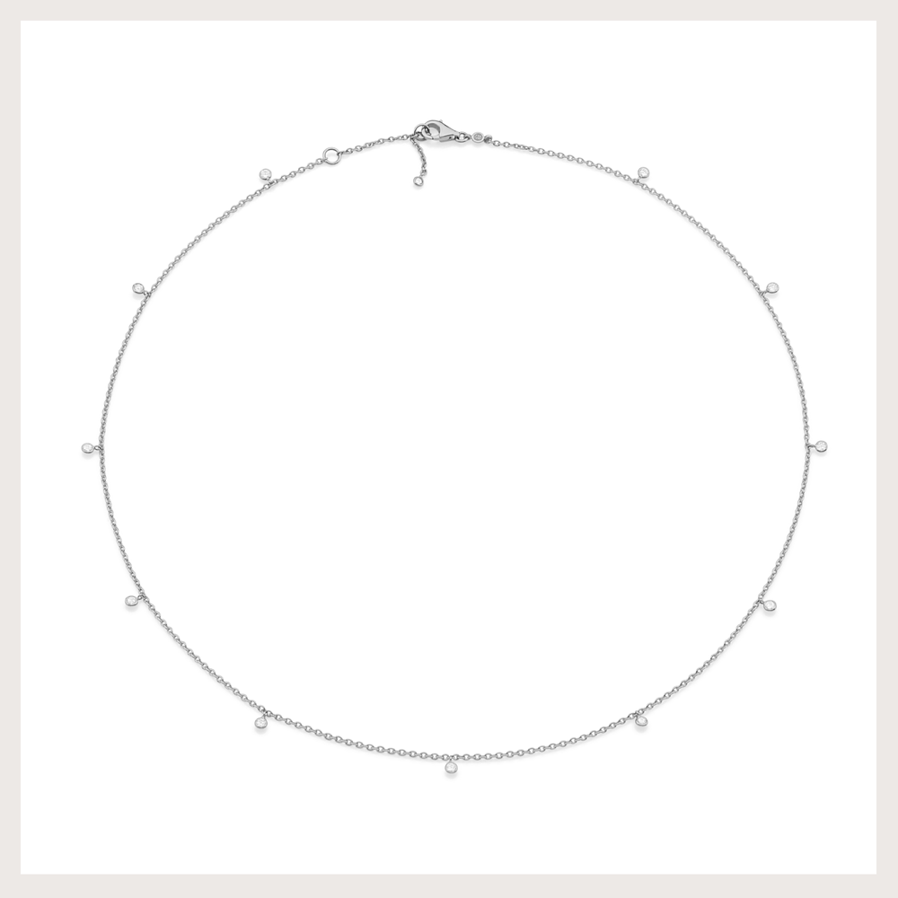 Colar em ouro branco 18 K com 12 diamantes redondos totalizando 0,349ct.
