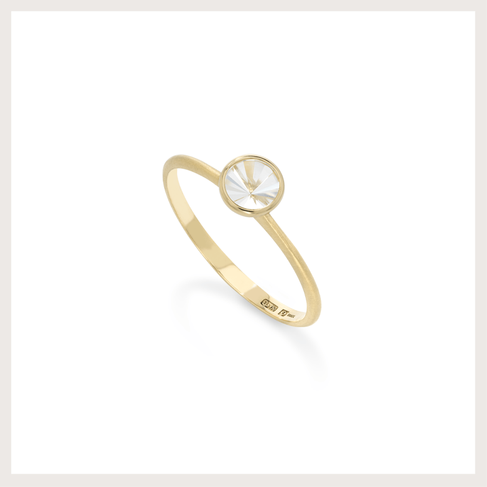 Anel de ouro com quartzo incolor.
