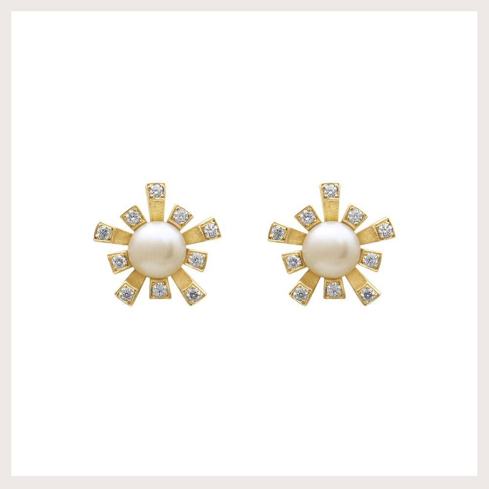 Brinco em ouro 18k e 20 diamantes totalizando 0,11ct e 2 pérolas